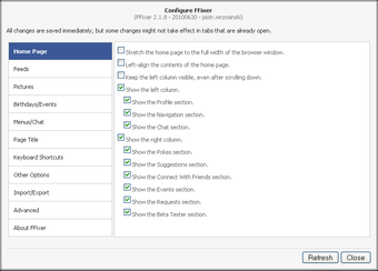 Dzięki FFixer możesz chować lub wyświetlać wybrane moduły Facebooka, widzieć pełne rozmiary zdjęć po najechaniu na nie kursorem myszki, czy wygodniej przeglądać albumy ze zdjęciami znajomych. FFixer pozwala dodawać zakładki do wybranych stron Facebooka, definiować skróty klawiszowe itd. itp.